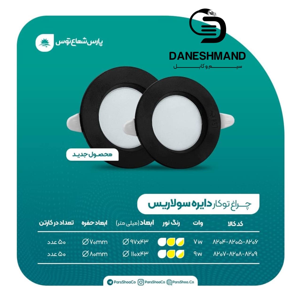 هالوژن 7وات فرم مشکی گرد مدل سولاریس پارس شعاع توس