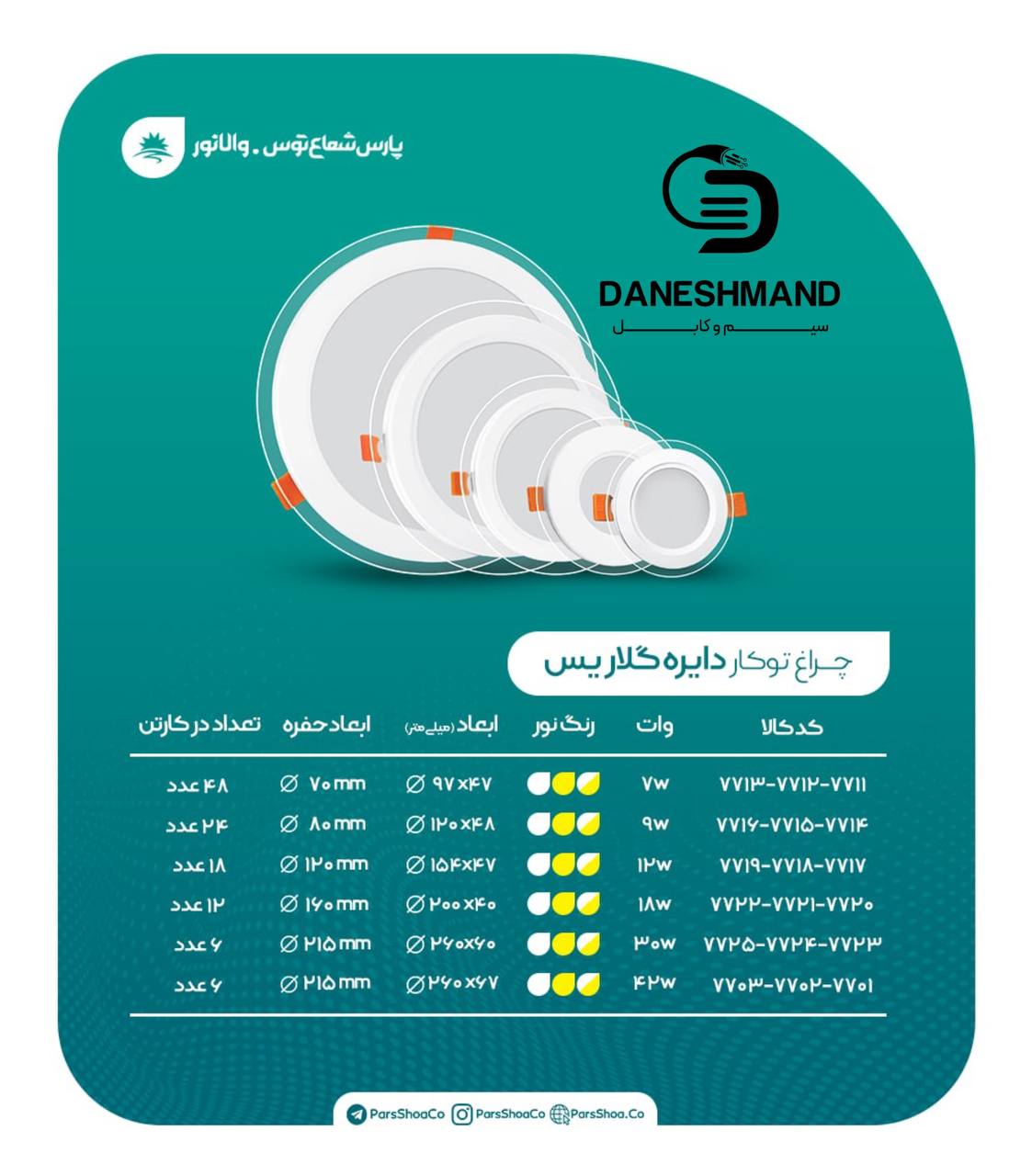 هالوژن9 وات فرم گرد مدل گلاریس پارس شعاع توس