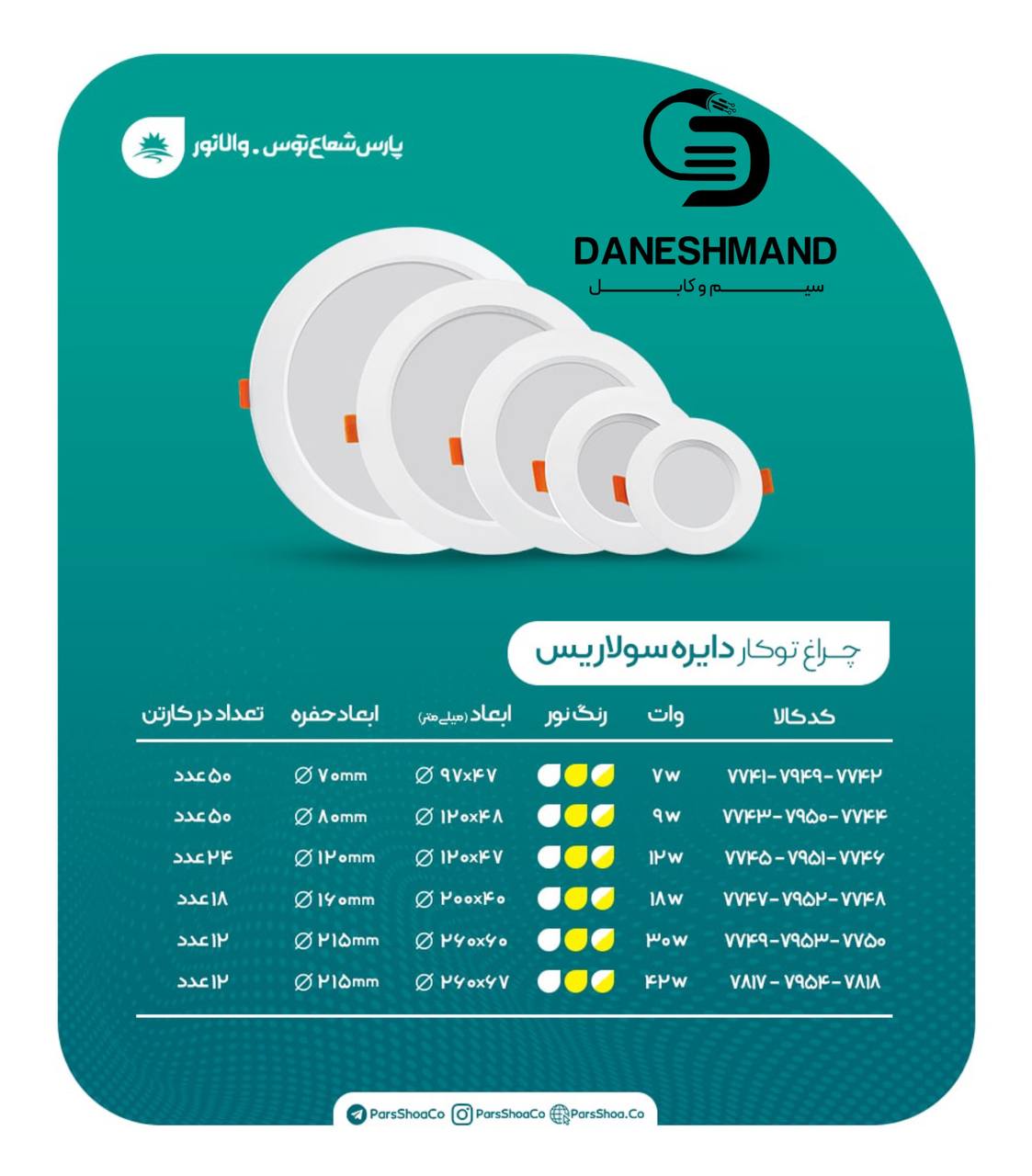 پنل توکار بک لایت گرد فرم سفید 18 وات پارس شعاع توس