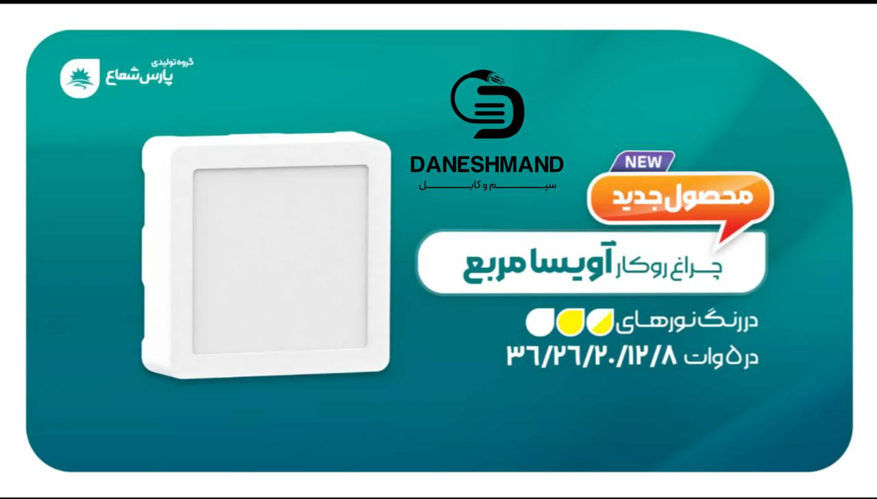 چراغ مربع روکار 8 وات آویسا پارس شعاع توس